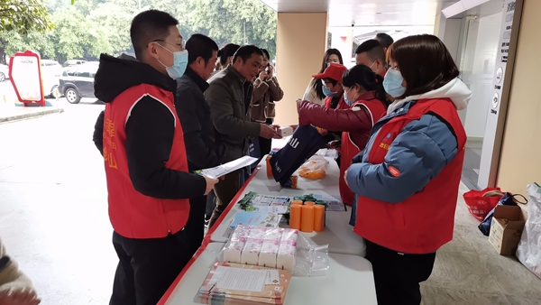 志愿者向市民發(fā)放垃圾分類宣傳材料。倉(cāng)山區(qū)委文明辦供圖