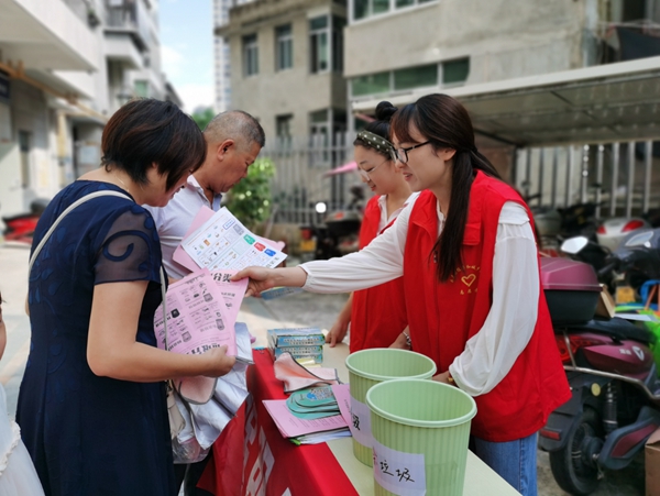 志愿者在社區(qū)內(nèi)開展垃圾分類宣傳活動。永泰縣委文明辦供圖
