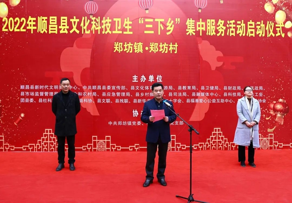 文明風(fēng)1月10日訊(通訊員 徐華山)1月7日,順昌縣2022年“三下鄉(xiāng)”集中服務(wù)活動啟動儀式在鄭坊鎮(zhèn)鄭坊村和元坑鎮(zhèn)際下村舉行。縣委常委、宣傳部部長陳光興出席啟動儀式。