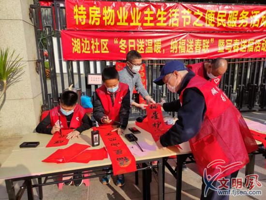春聯(lián)納福送心意,湖邊社區(qū)聯(lián)合特房物業(yè)、特房山水杰座業(yè)主委員會共同舉辦了“冬日送溫暖,納福送春聯(lián)”迎新春活動?,F(xiàn)場還同時(shí)開展了移風(fēng)易俗、家政幫扶、義診等主題宣傳和志愿服務(wù)活動,推動“移風(fēng)易俗、弘揚(yáng)時(shí)代新風(fēng)”,共同營造溫馨、和諧、勤儉的新春氛圍。