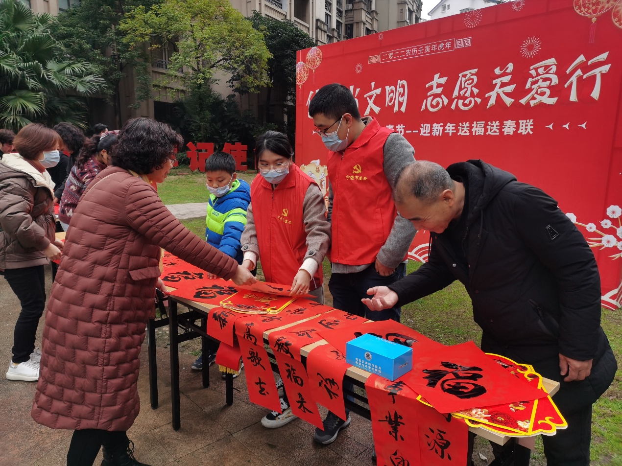 1月25日,由寧德市委辦公室、寧德市應(yīng)急管理局、蕉城區(qū)政協(xié)機(jī)關(guān)、蕉南街道萬達(dá)商圈黨委、福建環(huán)三興港投資集團(tuán)有限公司主辦的“永遠(yuǎn)跟黨走·我們的節(jié)日·春節(jié)--迎新年送福送春聯(lián)”活動(dòng)在萬達(dá)社區(qū)c區(qū)舉辦。相關(guān)單位負(fù)責(zé)人及志愿者參加此次活動(dòng)。