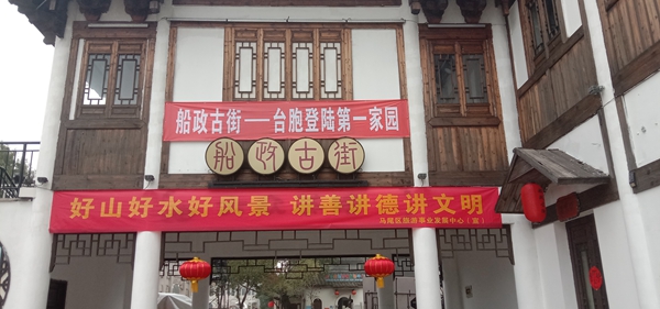 船政古街懸掛文明旅游宣傳橫幅。馬尾區(qū)委文明辦供圖