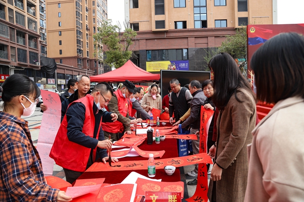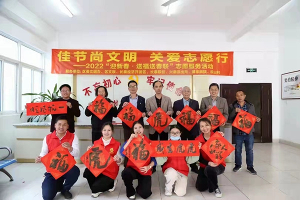 全區(qū)各級各部門、新時代文明實踐所(站)結(jié)合文化、科技、衛(wèi)生“三下鄉(xiāng)”、“寫春聯(lián)送福氣”等志愿服務(wù)活動,融入“?!蔽幕?,送福進(jìn)萬家,累計送出各類“?!蔽幕郝?lián)10000多副。如近日,長泰區(qū)文化科技衛(wèi)生“三下鄉(xiāng)”集中服務(wù)暨110社會服務(wù)聯(lián)動宣傳日活動,在萬豪天悅廣場順利舉辦?;顒尤谌搿案!蔽幕兀蛉罕娦麄飨冗M(jìn)文化、講解科學(xué)技術(shù)、普及健康知識,凝聚“愛長泰、美長泰、興長泰”的群眾力量。漳州市長泰區(qū)司法局聯(lián)合長泰區(qū)文廟服務(wù)中心開展“法治春聯(lián)賀新春 普法宣傳暖民心”主題活動,20名書法家和書法愛好者現(xiàn)場揮毫潑墨寫春聯(lián)、送祝福。此次活動共發(fā)放春聯(lián)1500余幅,法治宣傳材料600多份。