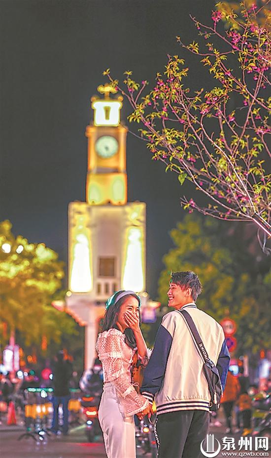 “今天特地來泉州看花燈。”人群中,身穿漢服的拾一和路北十分引人注目。兩人都來自廈門,傍晚趕到泉州后,還沒來得及將行李放到酒店,便匆匆趕到鐘樓“打卡”。拾一告訴記者,這是她們第三次來泉州,在她看來,泉州是一個非常有文化底蘊的城市,她一直很喜歡泉州獨特的人文特色。(記者郭芳蓉 魏曉芳)