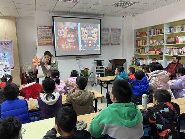 文化老師志愿者向孩子們講解花燈的制作步驟(鼓樓區(qū)委文明辦供圖)