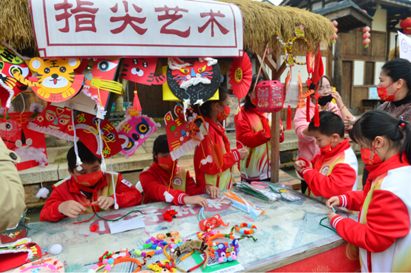 春節(jié)元宵期間,結(jié)合“我們的節(jié)日”系列活動(dòng),臺(tái)江區(qū)各中小學(xué)廣泛組織未成年人多形式展示傳統(tǒng)節(jié)日文化和福州特色“?!蔽幕?,以志愿服務(wù)形式為榕城添福送暖。在2022年福州市“我們的節(jié)日·春節(jié)”臺(tái)江區(qū)主場活動(dòng)中,福州市國貨路小學(xué)學(xué)生以情景式演唱《疍家新歌》講述了臺(tái)江疍家漁民脫貧上岸的故事,展示非遺文化;以小提琴演奏《在燦爛的陽光下》抒發(fā)少年們童心向黨、爭做新時(shí)代好少年的時(shí)代心聲;現(xiàn)場揮墨潑毫為市民群眾義務(wù)寫春聯(lián)、送祝福。在臺(tái)江區(qū)“我們的節(jié)日·元宵節(jié)”活動(dòng)中,孩子們參與猜燈謎、做?;⒒?、做冬奧特色湯圓等元宵活動(dòng),讓傳統(tǒng)節(jié)日過出新意。在2022年“民俗心·兩岸?!焙{兩岸民俗文化節(jié)活動(dòng)中,福州市南公小學(xué)師生參與“我是小小非遺人”少兒傳統(tǒng)手作集市,展示“匠心巧手”“墨香剪紙”“科幻繪畫”“福娃手作”“指尖藝術(shù)”“冷凝合香”和“妙筆生輝”等數(shù)十個(gè)項(xiàng)非遺手工藝品現(xiàn)場義賣公益活動(dòng),并將義賣所得公益款支援社會(huì)困難群體。