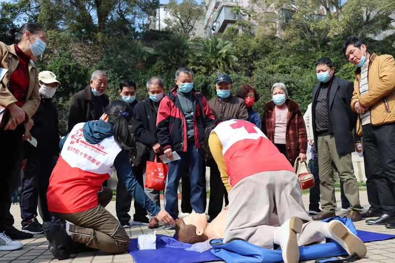 南平市紅十字會志愿者現場演示心肺復蘇法 葉善日 攝