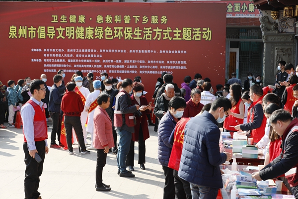 文明風3月2日訊 為貫徹落實習近平總書記“大力開展健康知識普及,提倡文明健康、綠色環(huán)保的生活方式”的重要指示精神,近日,由泉州市委文明辦、泉州市衛(wèi)生健康委員會、泉州市科學技術協(xié)會、泉州市急救指揮中心聯(lián)合開展的倡導文明健康綠色環(huán)保生活方式主題宣傳暨衛(wèi)生健康·急救科普下鄉(xiāng)服務活動,在南安市英都鎮(zhèn)五世宗祠舉行。