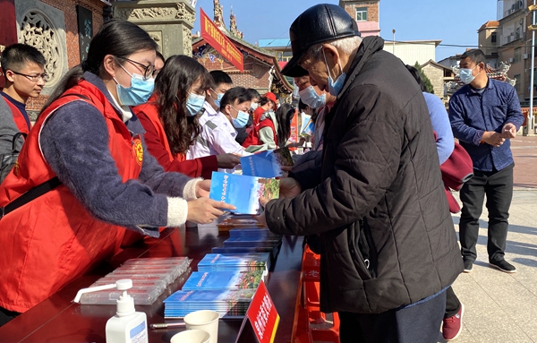 向群眾分發(fā)宣傳材料。東南網(wǎng)記者 林杰 攝