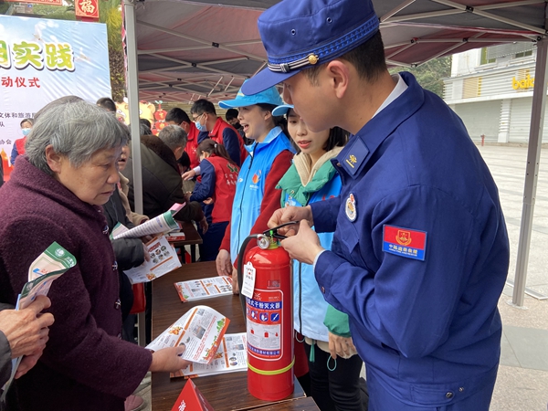 消防救援志愿服務隊志愿者向群眾介紹滅火器使用方法。屏南縣委文明辦供圖