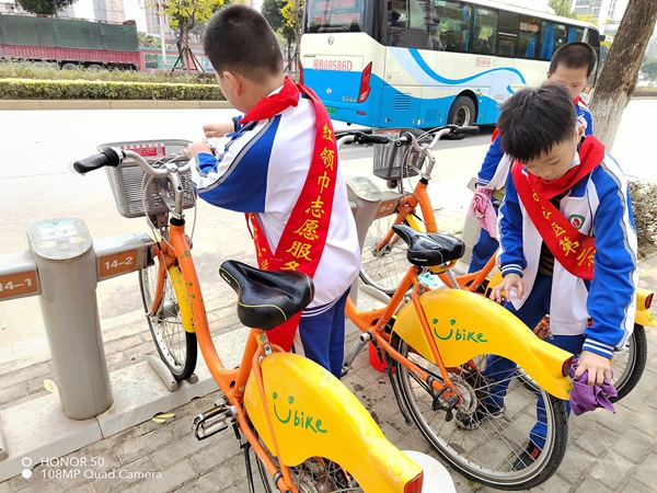 小志愿者們前往校園周邊擦洗共享單車 涵江區(qū)委文明辦供圖
