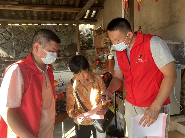 “大伯您好!這是我們核酸檢測(cè)相關(guān)流程,現(xiàn)在是特殊時(shí)期,請(qǐng)你們要戴口罩、勤洗手、不聚集。聽(tīng)從村里安排做好核酸檢測(cè)工作……”奎洋鎮(zhèn)退役軍人、村“兩委”莊旭霖進(jìn)村入戶給群眾做核酸檢測(cè)預(yù)登記和宣傳動(dòng)員工作。
