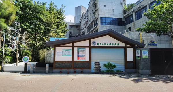 群升A區(qū)垃圾分類屋以保護古建筑、保存城市文脈為設(shè)計切入點,以與臺江元素相關(guān)的古樸青石板路、石橋、古厝為設(shè)計素材,將橋頭造型做為入口,利用附近的大榕樹做為實用裝飾,主體呈現(xiàn)為一座古厝造型建筑。同時,通過門面主題墻繪等設(shè)計,主動融入福州白塔烏塔,將現(xiàn)代城市景觀和古厝建筑形成呼應(yīng)。