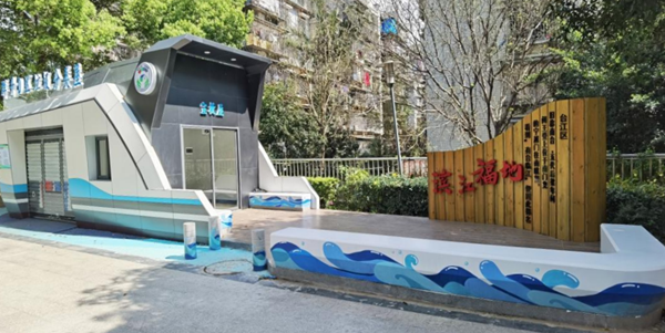 群升D區(qū)垃圾分類屋表現(xiàn)主題為臺江歷史悠久的商賈文化,該垃圾分類屋以濱江碼頭為切入點,主體建筑設(shè)計表現(xiàn)為一艘??吭谂_江碼頭的游船。同時,垃圾分類屋旁還設(shè)有宣教廣場,可為附近居民提供休閑用途,既營造了閑逸氣氛又保證了垃圾分類環(huán)保性能。(臺江區(qū)委文明辦報送)