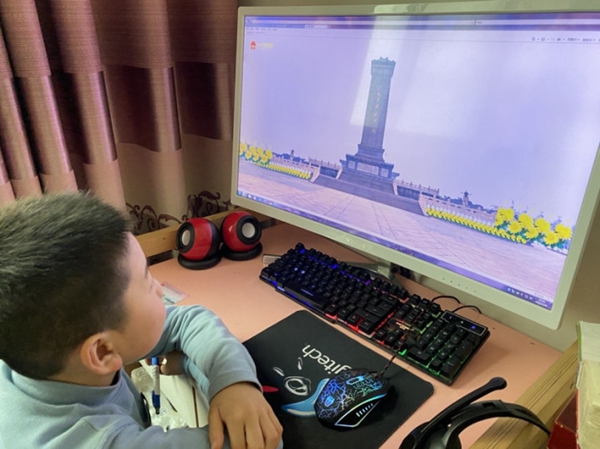 湖南中心小學(xué)的學(xué)生們登錄“中華英烈網(wǎng)”觀看直播視頻(湖南中心小學(xué)供圖)