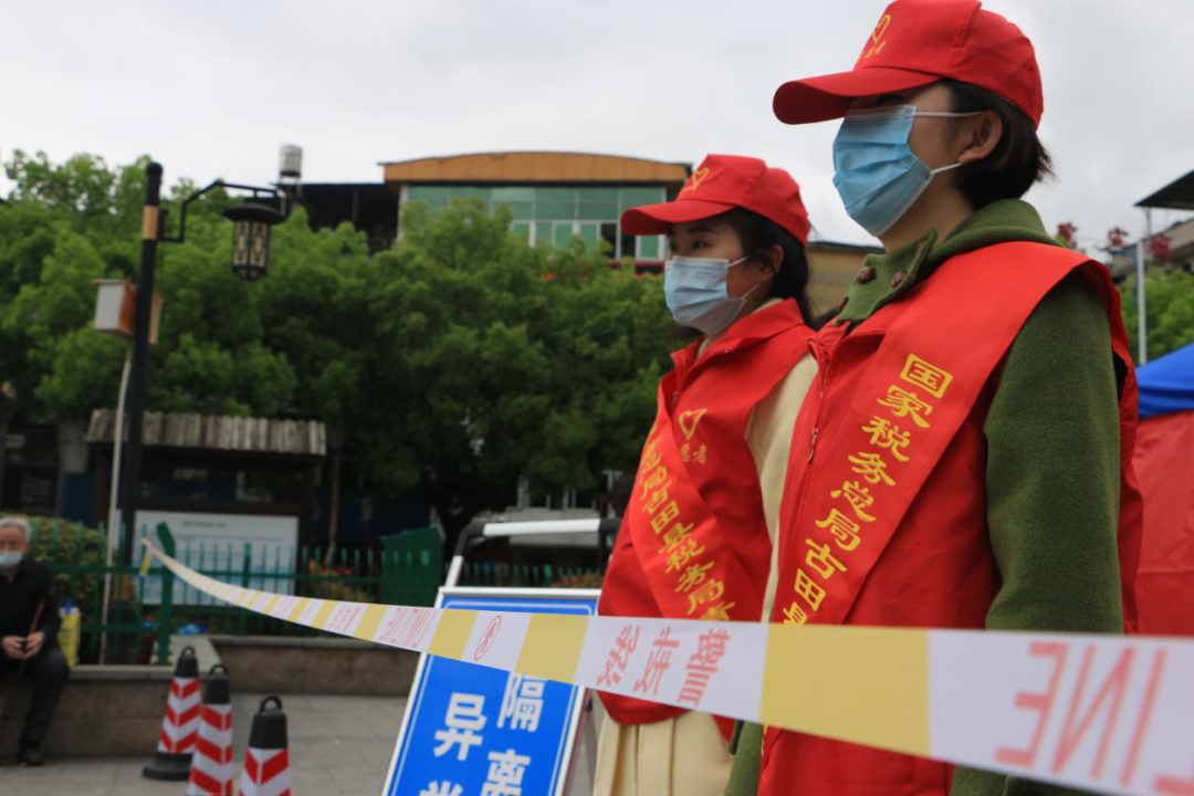 4月9日上午,國家稅務(wù)總局古田縣稅務(wù)局吹響集結(jié)號,迅速集結(jié)成立黨員志愿者突擊隊,立即行動奔赴抗疫前線,全力以赴助力打贏疫情防控阻擊戰(zhàn)。街頭巷尾、社區(qū)卡口、重點商超、高速路口隨處可見他們的身影,協(xié)助開展核酸采樣工作,引導(dǎo)行人佩戴口罩……“稅務(wù)藍”化身“志愿紅”,成為抗疫前線一抹讓人心安的暖色。