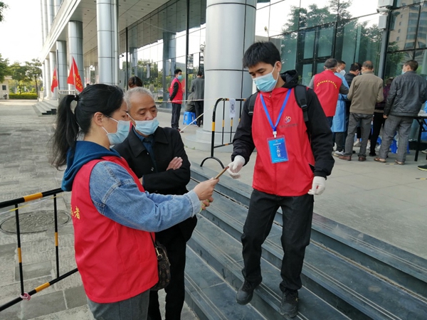 縣文化體育和旅游局志愿者助力核酸檢測工作