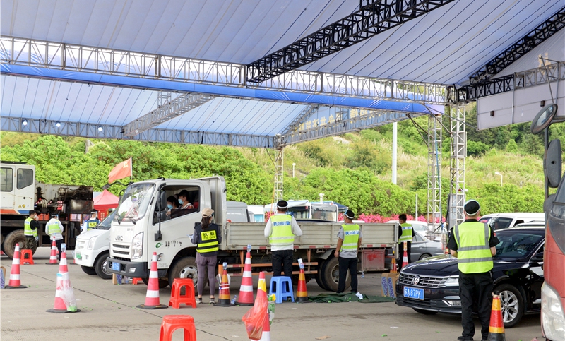 在查驗登記處,志愿者們密切配合,嚴(yán)格執(zhí)行“三查一問”、測溫、登記等規(guī)程,確保不漏一車、不漏一人。同時,面對不理解的司乘人員做好耐心解釋和提醒。