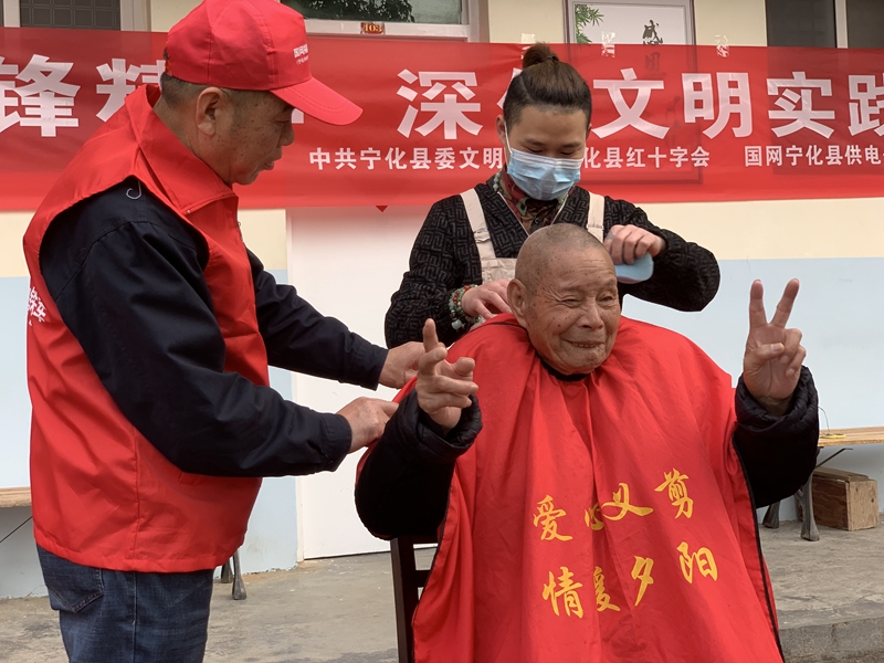 國網(wǎng)寧化縣供電公司志愿者走進(jìn)幸福園敬老院為老人義剪
