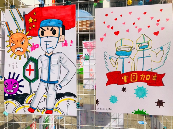 一張張生動形象的繪畫作品,清晰的地展現(xiàn)出孩子們對疫情的認識,也展現(xiàn)了孩子面對病毒來襲的勇敢和堅強,以及對白衣天使以及一線工作人員的敬仰之情……