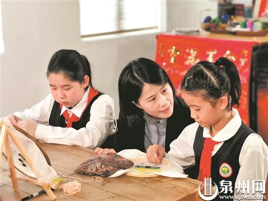 刻紙、花燈、金蒼繡、珠繡、木偶制作……泉州市通政中心小學(xué)的勞動(dòng)教育不止有自我服務(wù)型,還將傳統(tǒng)文化元素貫穿在勞動(dòng)課程中,賦予勞動(dòng)教育新的內(nèi)涵。