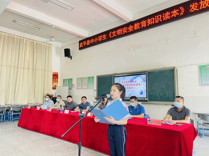 接著,出席儀式的領(lǐng)導(dǎo)為城區(qū)中小學(xué)分管德育老師代表及學(xué)生代表發(fā)放《武平縣中小學(xué)生文明安全教育知識(shí)讀本》。