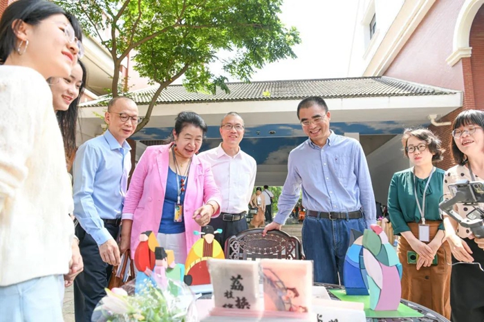 當天下午,福建師大副校長鄭家建同與會嘉賓共同觀摩了教育部首批新文科研究與改革實踐項目《多學科交叉融合的全媒體傳播人才培養(yǎng)模式改革與實踐》暨“聯(lián)結(jié)體課程群”跨專業(yè)實踐活動。播音與主持藝術(shù)、廣播電視學、廣播電視編導、廣告學4個專業(yè),與《口語傳播》《電視導播》《文化創(chuàng)意產(chǎn)業(yè)》《廣告活動策劃》4門課程,在師生前期充分準備的基礎(chǔ)上,10個文創(chuàng)攤位和16個工作坊聯(lián)結(jié)聯(lián)動、實景展現(xiàn),黑莓樂隊、有絲集市、語言實驗室輪番上陣。不少學生帶著新奇的目光體驗了現(xiàn)場教學后,就被這有趣的課堂“圈粉”,專家學者和校友們也為這一跨學科融合現(xiàn)場教學模式掌聲喝彩!