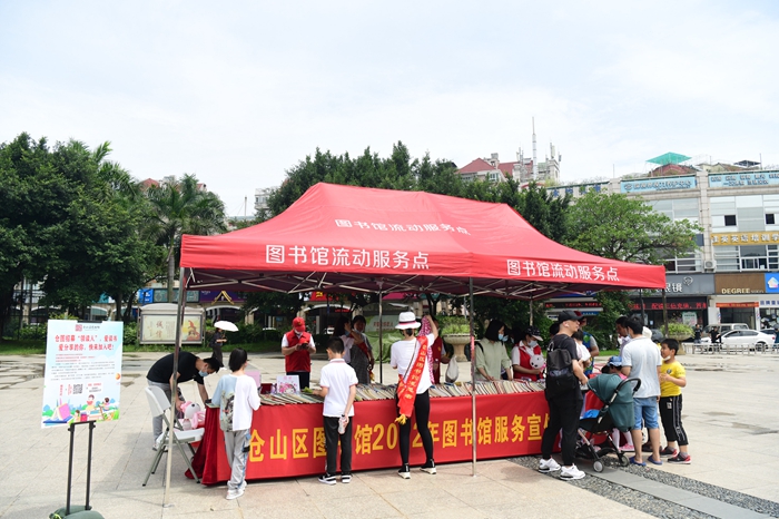 此外,倉山區(qū)圖書館提供汽車圖書館流動服務,配有近500冊圖書供市民們借閱,還提供讀者證申辦、圖書借還等閱讀服務。