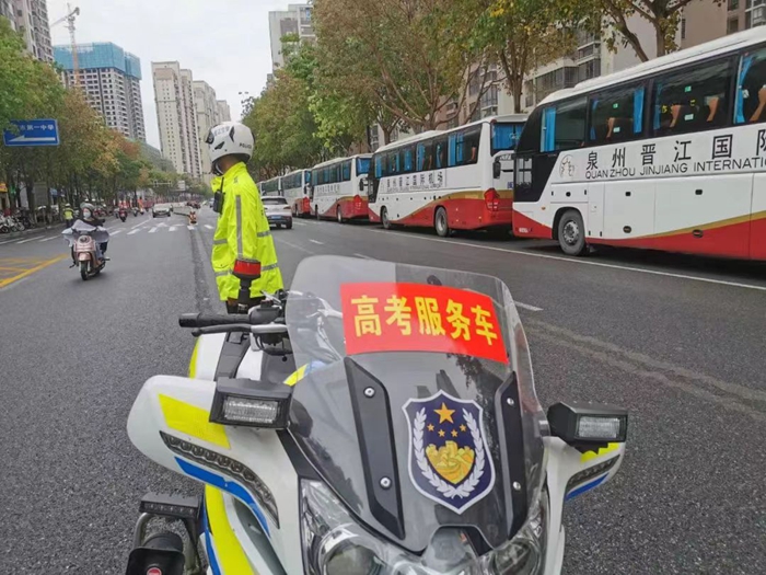 為了晉江考生創(chuàng)造安全舒適的考試環(huán)境和暢通有序的交通環(huán)境,晉江交警提前部署,多警聯(lián)動(dòng),設(shè)立愛心護(hù)考站,為考生提供無(wú)償送考車輛、護(hù)考物品等應(yīng)急助考服務(wù),全方位織密筑牢“平安高考”安保防線。