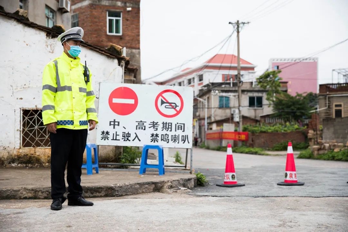 交警在考點(diǎn)周邊維護(hù)交通秩序(泉港區(qū)山腰街道供圖)