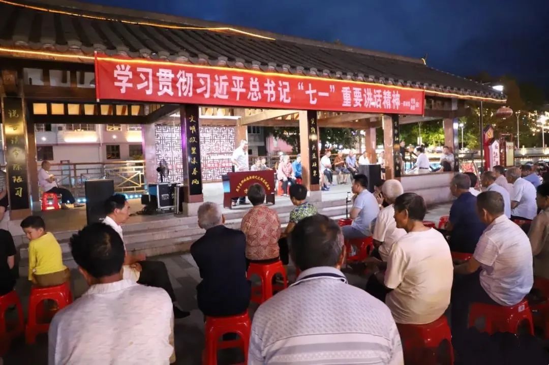 獅城鎮(zhèn)城西社區(qū)新時代文明實踐站用“方言評書”的形式宣講習(xí)總書記“七一”重要講話精神。陳晨旭 攝