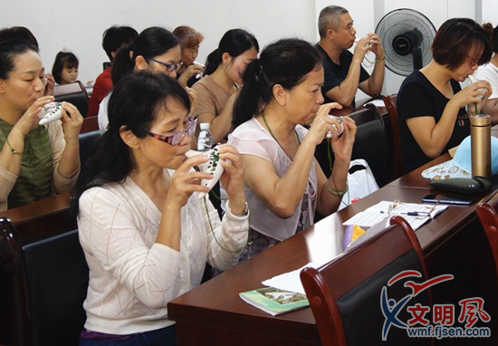 居民們學習陶笛吹奏(祥美社區(qū)供圖)