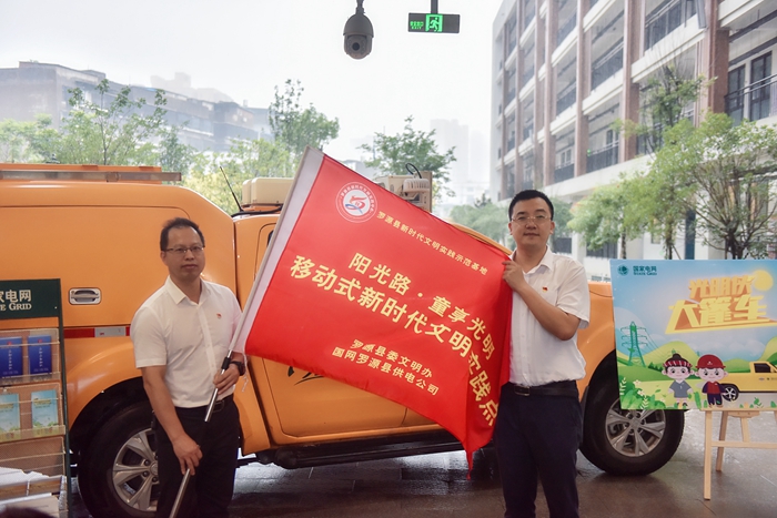 文明風6月14日訊 6月13日,中共羅源縣委宣傳部副部長、文明辦主任姚明榮為國網(wǎng)羅源縣供電公司“光明俠大篷車”授旗,這標志著福建電力系統(tǒng)首個移動式新時代文明實踐點正式成立,也標志著羅源縣在拓展新時代文明實踐中心建設(shè)方面開啟了新探索、邁出了新步伐、創(chuàng)出了新路徑。