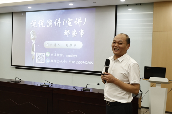 講座邀請泉州市演講與口才學(xué)會副會長兼秘書長、泉州演講達(dá)人黃顏水到場授課。黃顏水老師以《說說演講那些事》,從什么是演講、別出新意的方法、演講高潮的設(shè)計(jì)、演講技巧的運(yùn)用等四個(gè)方面向?qū)W員們進(jìn)行賽前指導(dǎo),生動形象地解析了演講的概念、演講稿的寫作和演講的技巧。