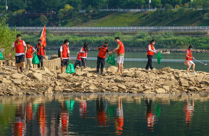 南平市環(huán)保志愿者在“百姓河長(zhǎng) 潔凈母親河”主題活動(dòng)中開展凈灘行動(dòng) 南平市委文明辦供圖