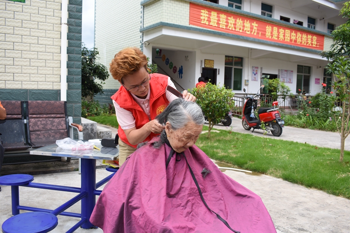 林湘蓮為敬老院老人義務(wù)理發(fā)