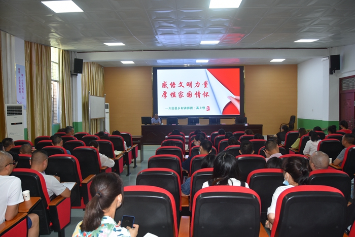 本次講堂圍繞文化、文明、道德、家國、家風(fēng)、家訓(xùn)等六個(gè)關(guān)鍵詞匯進(jìn)行闡述。在當(dāng)今傳統(tǒng)文化和外來文化、傳統(tǒng)文明和現(xiàn)代文明高度融合碰撞的背景下,為了讓大家進(jìn)一步傳承中華傳統(tǒng)文化基因,彰顯文明力量。本期文化講堂從傳統(tǒng)詩書、禮義廉恥、良好家風(fēng)、高尚品德等方面解析文明力量與家國情懷之間的緊密聯(lián)系,期間插播家國情懷、耕讀文化、家庭教育等短視頻,展現(xiàn)中華傳統(tǒng)文化審美風(fēng)范,感悟傳統(tǒng)文化之光芒,更加自覺地讓大家用優(yōu)秀傳統(tǒng)文化滋養(yǎng)大田縣鄉(xiāng)村教育實(shí)踐,培育和踐行社會主義核心價(jià)值觀。