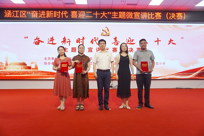 文明風7月14日訊 為迎接黨的二十大勝利召開,集中展現(xiàn)新時代涵江區(qū)廣大干部群眾踔厲奮發(fā)、篤行不怠的新作為、新姿態(tài),7月13日下午,由中共涵江區(qū)委組織部、中共涵江區(qū)委宣傳部聯(lián)合主辦的“奮進新時代 喜迎二十大”微宣講決賽精彩上演。區(qū)委常委、組織部部長蔡志,區(qū)委常委、宣傳部部長張茜華,福建新華發(fā)行集團莆田分公司副總經(jīng)理吳建立等參加活動。