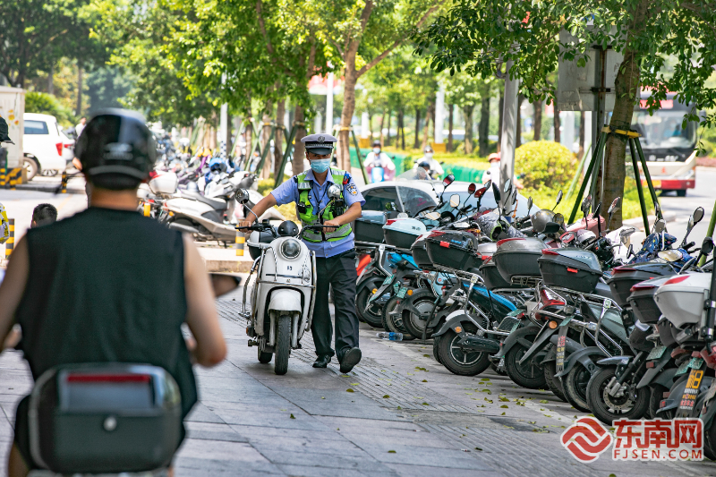 交警對(duì)違停的二輪車輛依法進(jìn)行拖移。東南網(wǎng)記者 葉伏國(guó) 攝