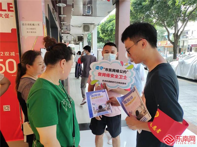 志愿者們沿街宣傳文明上網倡議書(杏濱街道新時代文明實踐所供圖)