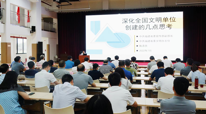 省委宣傳部副部長、省委文明辦主任陳添貴作全國文明單位創(chuàng)建專題輔導講座