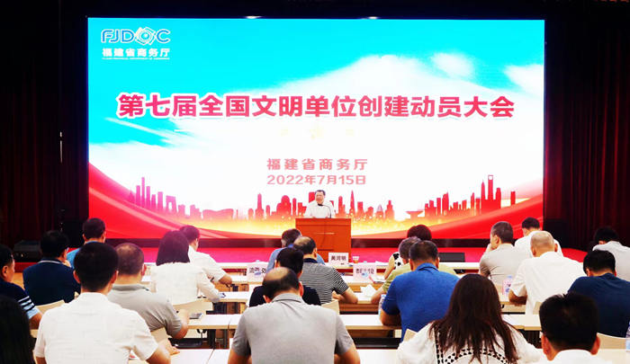 文明風7月21日訊 為進一步提升文明單位創(chuàng)建工作水平,動員全廳上下積極投入第七屆全國文明單位創(chuàng)建,7月15日下午,福建省商務廳召開了第七屆全國文明單位創(chuàng)建專題輔導講座暨動員大會。會議邀請了省委宣傳部副部長、省委文明辦主任陳添貴作全國文明單位創(chuàng)建專題輔導講座。省商務廳黨組書記、廳長黃河明主持會議,并作動員講話。廳領導,駐廳紀檢監(jiān)察組干部、廳機關全體干部職工、廳屬事業(yè)單位代表等200多人參加會議。