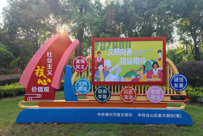 2022年以來(lái),倉(cāng)山區(qū)圍繞“?!蔽幕黝},突出工作重點(diǎn),通過(guò)多種形式開展宣傳,分別在臚雷路、會(huì)展東路、南江濱西大道、飛鳳山公園、煙臺(tái)山公園等點(diǎn)位制作以“?!蔽幕癁橹鞯摹按笮丸F藝公益廣告景觀小品”和“鐵藝公益廣告展架”共8面。此外,還充分運(yùn)用“倉(cāng)山微文明”微信公眾號(hào)及QQ群、微信群等陣地廣泛宣傳。通過(guò)廣泛傳播“?!蔽幕貙捀N幕麄髑篮吐窂?,加強(qiáng)福文化常態(tài)化宣傳,全方位、立體式、多角度講好福文化故事。