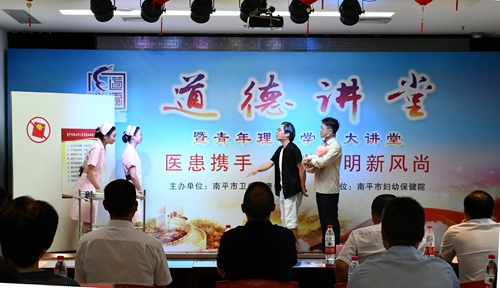 文明風8月2日訊 近日,由南平市衛(wèi)健委主辦、南平市婦幼保健院承辦的“醫(yī)患攜手 共譜文明新風尚”道德講堂暨青年理論學習大講堂活動在延舉行。南平市衛(wèi)生健康委員會黨組成員、副主任、直屬機關(guān)黨委書記王智勇,南平市衛(wèi)健委直屬各黨組織書記、黨辦主任等近70名黨員干部職工參加此次活動。