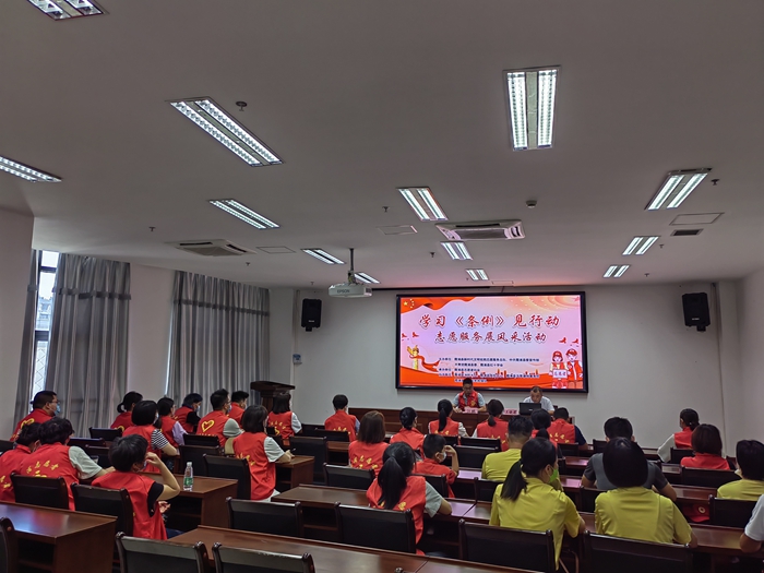 8月8日上午,在新時代文明實踐中心開展“學(xué)習(xí)《條例》見行動”志愿服務(wù)展風(fēng)采活動。鄭曉榕攝