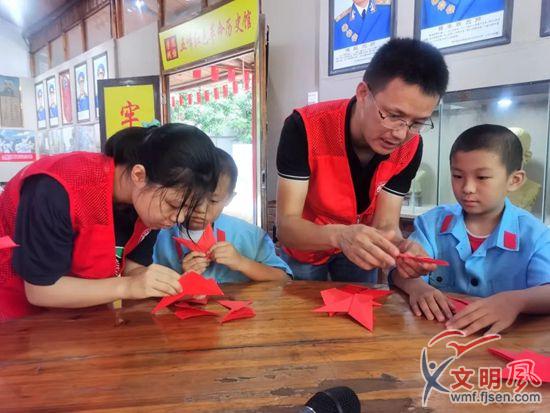 志愿者們指導(dǎo)孩子制作立體五角星。(同安區(qū)好宜升志愿服務(wù)隊(duì)供圖)