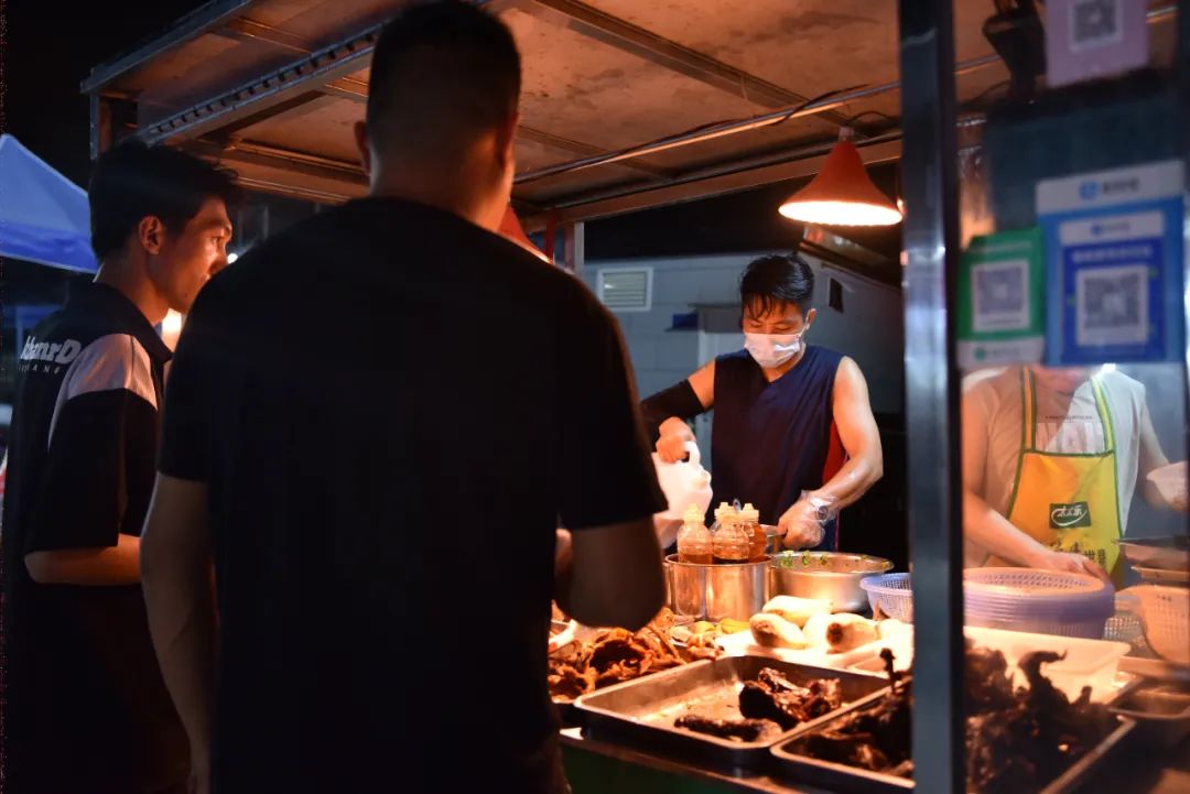 夏夜,炎熱慢慢褪去,清風(fēng)吹拂街道,熱鬧的叫喊聲在金溪農(nóng)貿(mào)市場(chǎng)漸起,各色美食的香味混雜,飄散百米,臭豆腐、手抓餅、牛肉丸、雞蛋堡......形形色色的佳肴組成了獨(dú)屬金涵的“深夜食堂” ,點(diǎn)燃著“煙火氣”,為金涵解鎖路邊攤管理“新模式”。