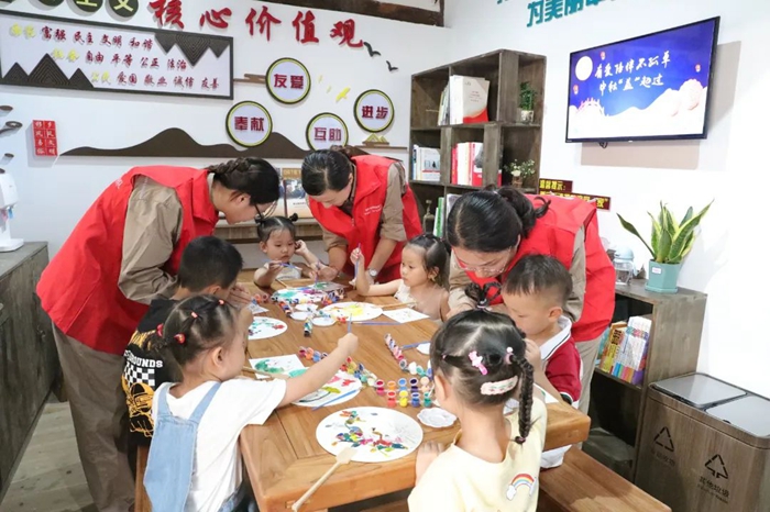 活動(dòng)以“繪畫中秋竹扇、講中秋習(xí)俗、視頻團(tuán)圓、吃月餅、贈(zèng)送書籍”為主要內(nèi)容。整個(gè)活動(dòng)現(xiàn)場充滿了歡聲笑語,“親”意融融,用情牽手留守兒童,用愛溫暖稚嫩童心。