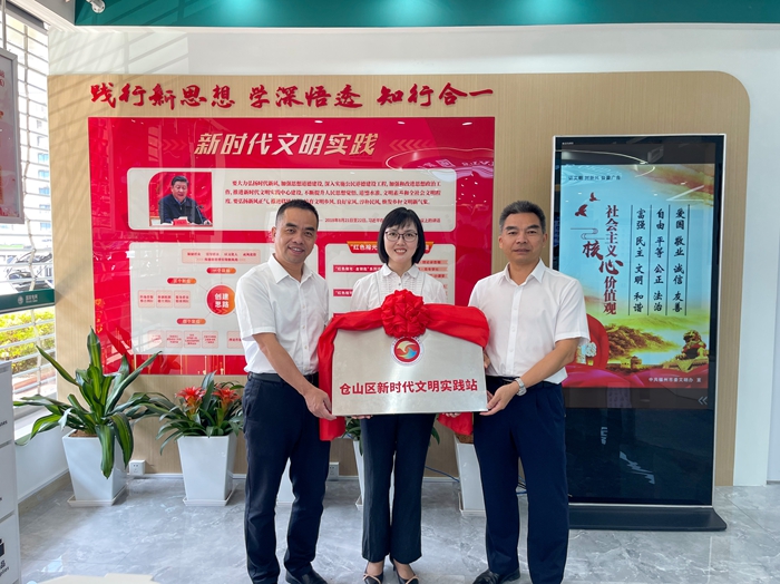 文明風(fēng)9月21日訊 為推動(dòng)新時(shí)代文明實(shí)踐深入開展、落地生根,滿足群眾精神文化生活新期待,打通宣傳群眾、教育群眾、關(guān)心群眾、服務(wù)群眾“最后一公里”。9月20日上午,“倉山區(qū)新時(shí)代文明實(shí)踐站”在國網(wǎng)倉山供電服務(wù)中心授牌成立,這是國網(wǎng)福州供電公司在福州市區(qū)首個(gè)授牌的新時(shí)代文明實(shí)踐站。中共倉山區(qū)委常委、宣傳部部長李亦仁,國網(wǎng)福州供電公司黨委委員、工會(huì)主席李加利親臨現(xiàn)場授牌,中共倉山區(qū)委文明辦、倉前街道主要領(lǐng)導(dǎo)及分管領(lǐng)導(dǎo),國網(wǎng)福州供電公司黨建部主要負(fù)責(zé)人等參加授牌儀式。
