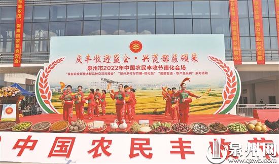 喜看稻菽,禮贊豐收。9月22日上午,以“慶豐收迎盛會·興瓷都展碩果”為主題的泉州市2022年中國農(nóng)民豐收節(jié)在德化萬達·瓷藝城廣場開幕。